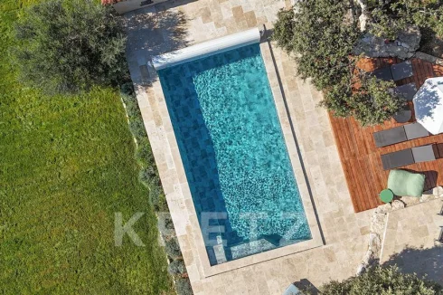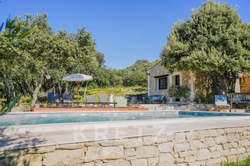 Set on 8,600 sqm of enclosed land featuring a swimming pool and a storage outbuilding.