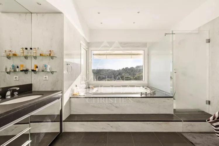 The villa boasts a total of six bedrooms, including a sumptuous master bedroom with a dressing room, a private bathroom, separate toilets, and a terrace with a jacuzzi, perfect for relaxing in privacy. Three large bedrooms share a bathroom, while two other bedrooms have a private suite with a shower room.