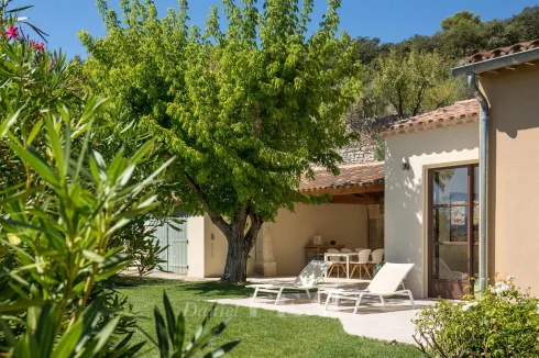 This relatively recent 140 sqm single-storey property commanding a superb view of the surrounding villages and the countryside is located in peaceful Joucas village just a few minutes from Gordes.