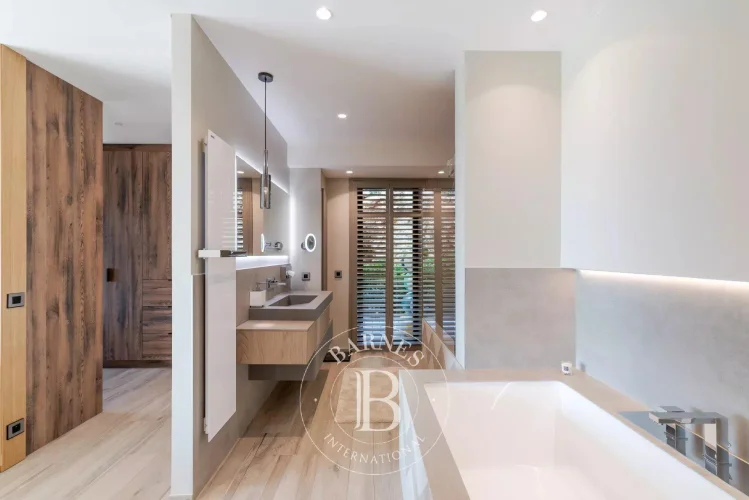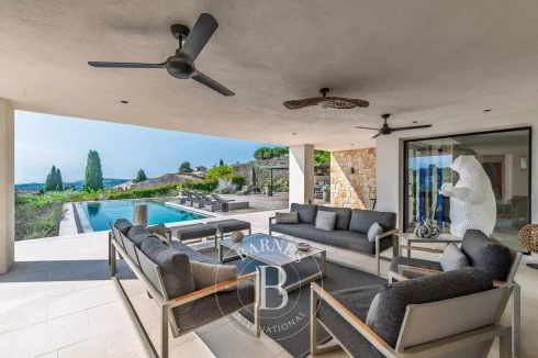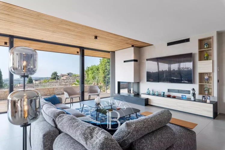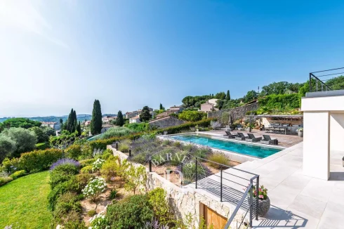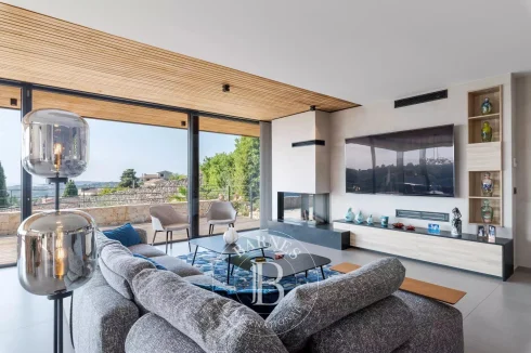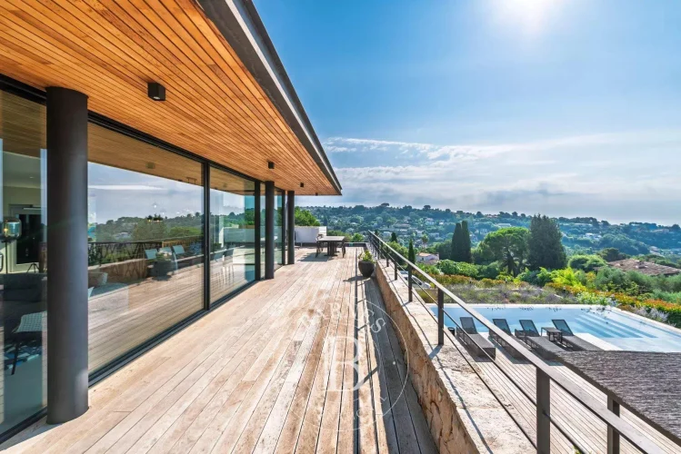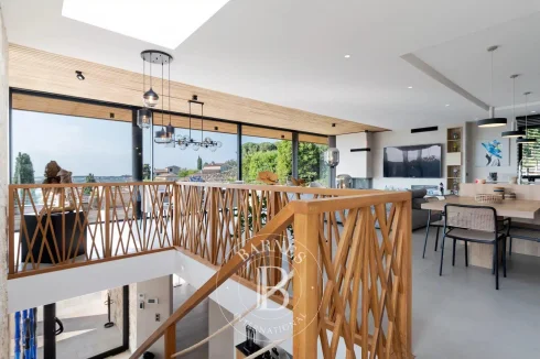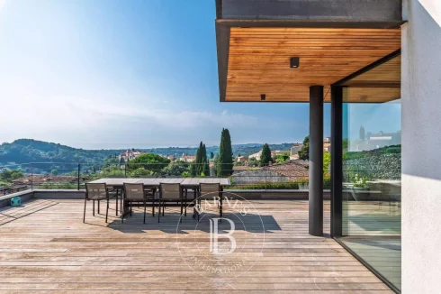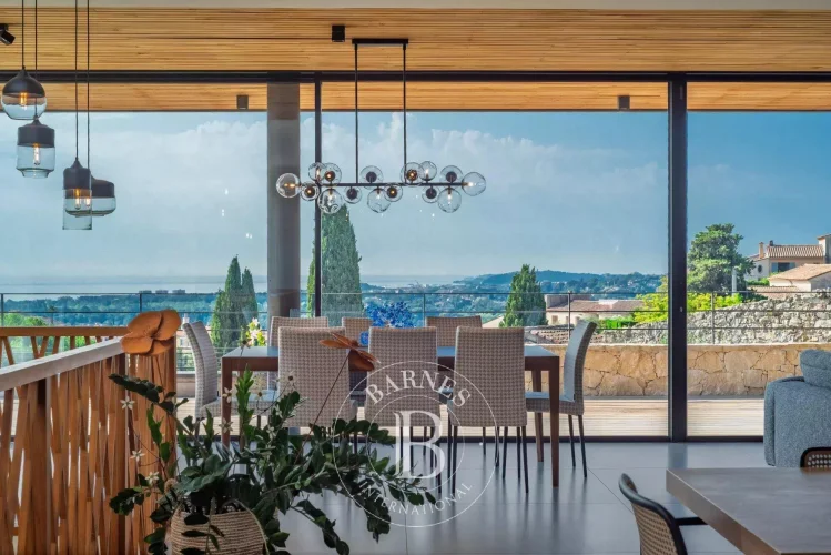 Sole Agent - Completed in 2022, this exceptional contemporary villa of approx. 480 sq.m offers luxury finishes and a refined decoration, in a rare location within walking distance to the charming village of Biot, with breathtaking views over the sea and the old village.