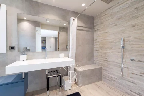On the ground floor, the property features an elegant entrance hall, a spacious master bedroom with en-suite bathroom, a second en-suite bedroom, and a large office that can easily be converted into a third bedroom, a laundry and 2 guests independent ensuite bedrooms in front of the pool.