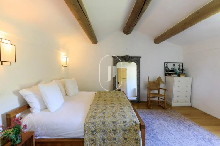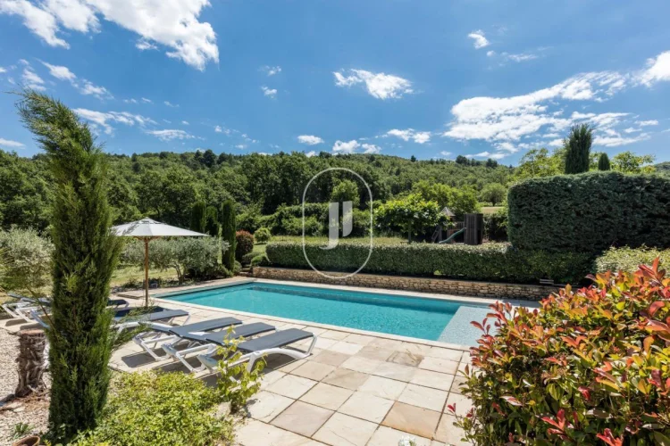 The landscaped and partly enclosed grounds extend over more than 2 hectares, ensuring absolute peace and privacy. The pool, equipped with an electric cover, blends harmoniously into the natural setting. Several terraces and shaded areas invite you to enjoy the Provençal climate.