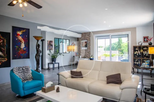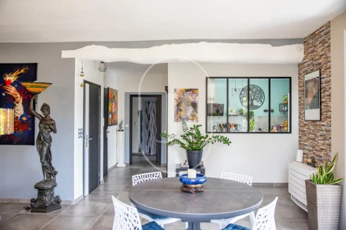 Modern comforts enhance the whole property: automatic gate with videophone, electric shutters, double glazing, smart home features, reversible air conditioning, fiber optic internet, mains drainage with regularly serviced lift pump, and rainwater harvesting system. The house is built on a solid concrete frame, and a non-intrusive right-of-way located outside the garden boundaries in no way affects your enjoyment of the property. This unique residence, discreetly charming and of rare quality, is ideal as a primary residence, a beautiful family home, or for a hospitality project (two rooms currently used as guest accommodation). A peaceful Provençal haven, private and preserved, to be discovered in complete discretion.
