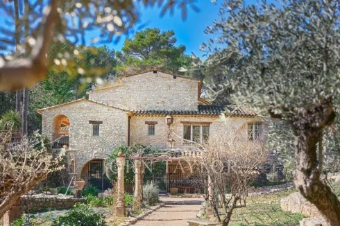 On the hills of La Colle-sur-Loup, in the most prestigious neighborhood of the Saint-Paul de Vence area, a majestic stone-built property of 800sq.m designed by a well known local architect benefits from magnificent sea and forest views on its massive landscaped grounds of approximately 1 hectare with its large heated infinity pool.