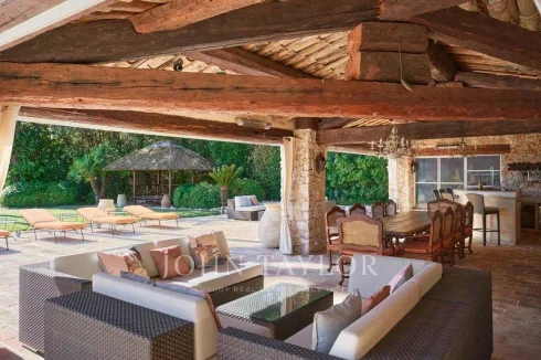 A welcoming courtyard leads us to the property which comprises of an entrance hall, 3 sitting rooms, a dining room, a kitchen with pantry, a large well furnished covered terrace with bar, outside kitchen, Tv area, 6 bedrooms and 5 bathrooms. On the lower floor, a relaxing wellness room with massage room, jacuzzi, sauna, hammam, a music room/dancing room, a cinema, a wine cellar and a 1-bedroom apartment.