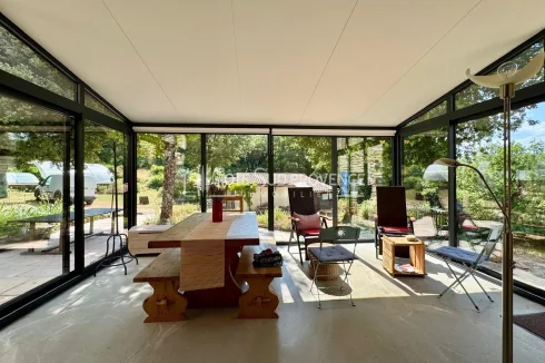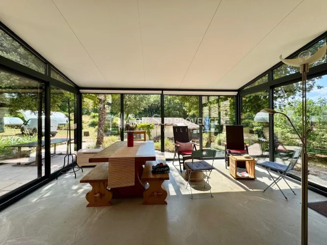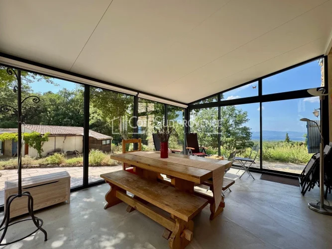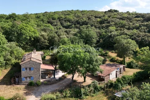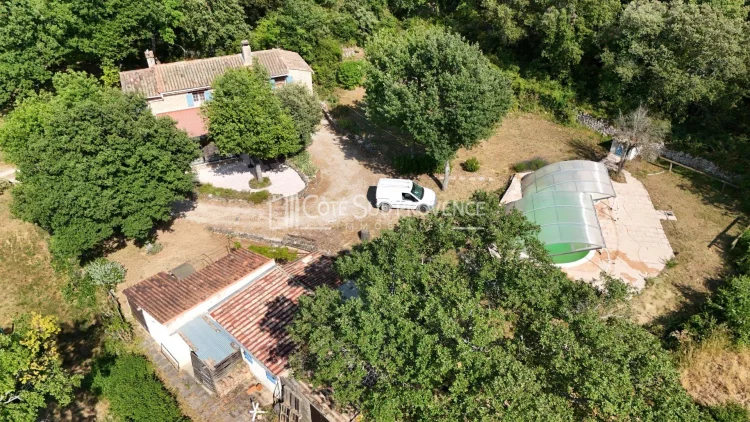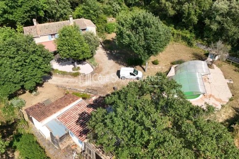 In absolute calm in a dominant position, Mazet of about 110 m² on two levels with outbuildings and free-form liner swimming pool.