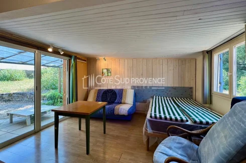 Location in the middle of nature on about 5000 m² of wooded land 15 minutes from Saint-Didier village all year round shops and 45 minutes from Avignon Tgv.