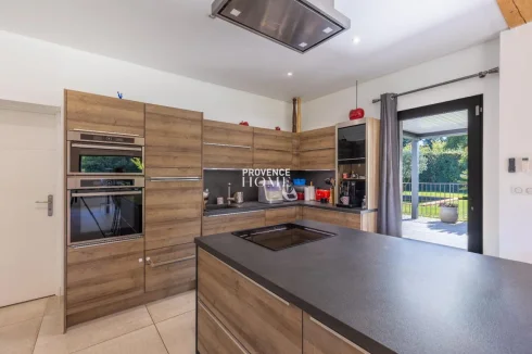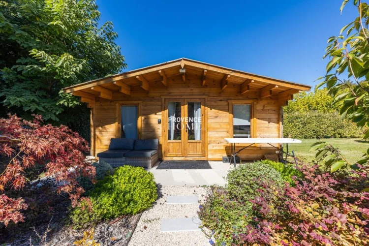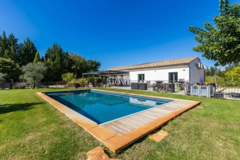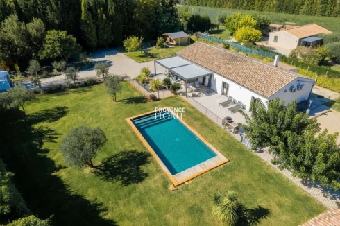 Provence Home, the Luberon real estate agency, is delighted to present for sale a single-storey house of around 145 sqm, built in 1960 and fully renovated in 2018 in a contemporary style. The property also offers outbuildings including a fitted chalet, garden workshop, and pool house, all set on a landscaped and wooded plot of about 2,810 sqm with a 13 × 5 m swimming pool. Nestled in a peaceful environment in the heart of Provence, just 2.5 km from the center of Le Thor and close to Avignon and L'Isle-sur-la-Sorgue.