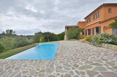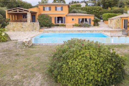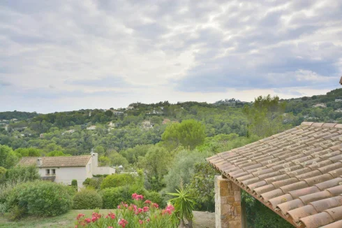 Near Valbonne : residential area, quiet, beautiful Provençal villa, enjoying a clear view, offering : entrance hall, large and bright living/dining room, equipped open-plan kitchen, laundry room, 3 bedrooms including 1 on one level and 2 bathrooms. Planted land of 2 694 m² with beautiful swimming pool area. Independent studio. Garage of 40 m².