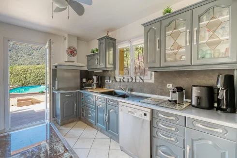 Offering an unobstructed view of the hills, this house is surrounded by a lush garden composed of plants with Mediterranean fragrances, creating a real haven of peace in Cavalière.