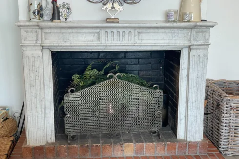 Entrance, living room with fireplace, equipped kitchen, bedroom 1, bedroom 2, shower room, guest toilet.