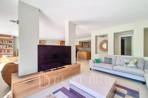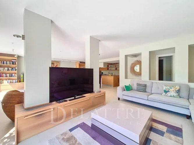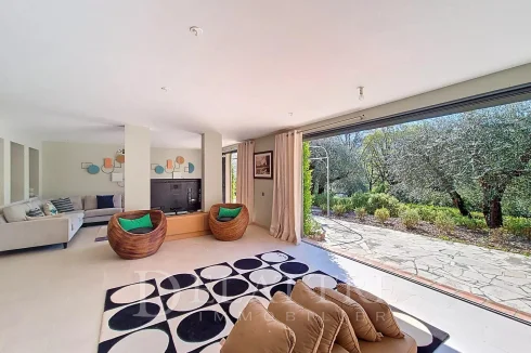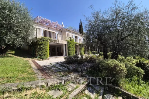 Le Bar Sur Loup: Located in a sought-after, leafy, and quiet area, this lovely family home features a beautiful entrance hall and four large en-suite bedrooms, opening onto a south-facing balcony terrace with garden views. On the ground floor, there's a spacious living room/dining room/kitchen of approximately 75m² bathed in natural light through its large bay windows. Then, there's a master bedroom of approximately 50m² with a beautiful bedroom, a bathroom and shower, a large dressing room, and an office, overlooking the garden. All set on a magnificent adjoining plot of 3,150m², with a swimming pool to be renovated.