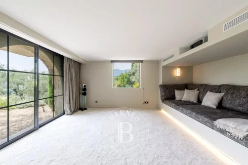 Its landscaped garden, nestled within an olive grove, features a heated swimming pool – the perfect spot to enjoy this exceptional setting all year round.