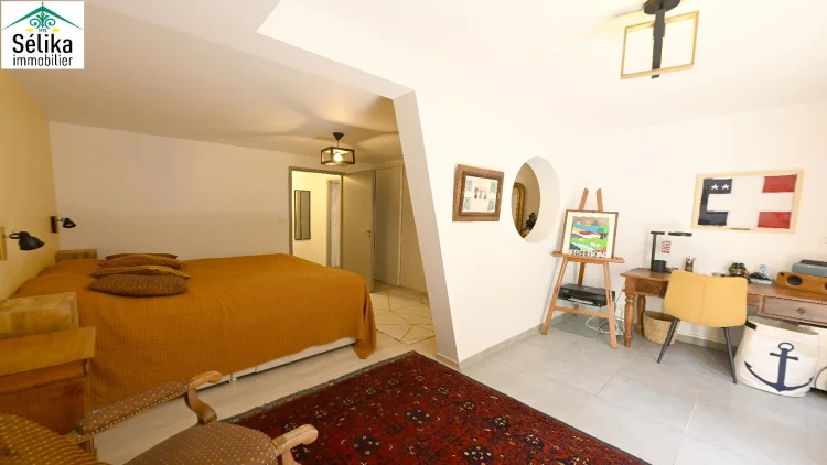 Nestled in a green environment with a breathtaking view of the forest, this typical villa of 124 m² combines authenticity, modern comfort and serenity. Completely renovated, it stands out for its beautiful services, its bright layout and its intimate south-facing terrace? a real haven of peace just a few steps from the centre of Arcachon! The living room of more than 50 m² with open kitchen opens directly onto the outside. Three bedrooms, one of which has a private terrace, a dressing room, a bathroom, a shower room, three toilets and a laundry room complete the set. Gas heating, double glazing, motorized shutters, double flow Vmc. No vis-à-vis, no work to be done! Only a few minutes from the beaches, in the most sought-after area of Arcachon: calm, greenery and everything on foot!