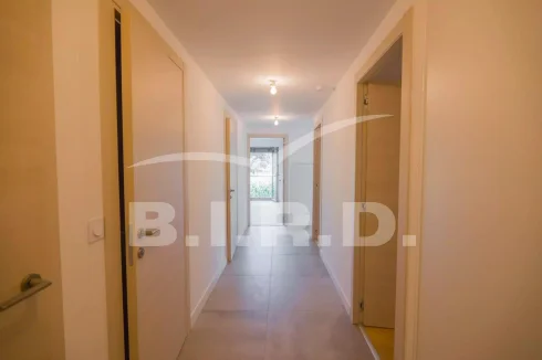 - Large tiled floors in the living areas and oak parquet in the bedrooms for a warm touch.