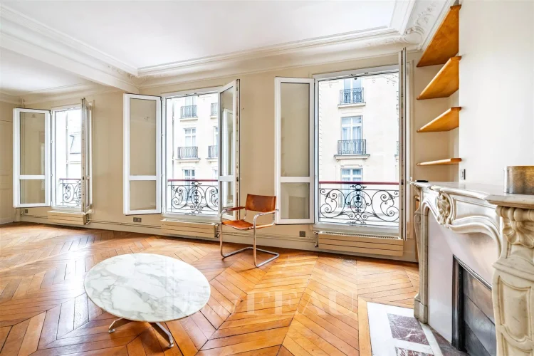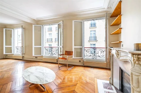 Rue d’Assas, near Luxembourg Gardens. Thus 85 sqm apartment on the 3rd floor of a fine 19th century building includes a bright south-west facing living/reception room enjoying an pen view, a kitchen, two bedrooms overlooking a courtyard, a bathroom and a wc.