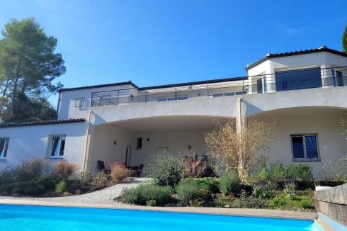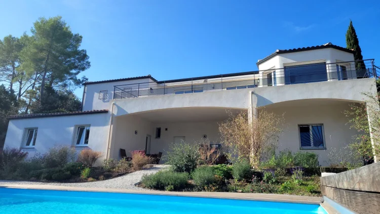 Magnificent large contemporary villa of approximately 190m², lived in since 2020, in a quiet area close to the village, with a beautiful panoramic view, including