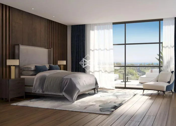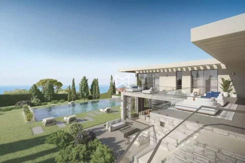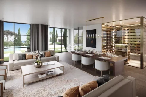 With a surface area of approximately 450 m², this 5-suite villa offers an exceptionally spacious living environment, enhanced by particularly generous ceiling heights. The vast custom-made bay windows flood the interior with natural light and eliminate any boundaries with the outdoors, creating a seamless flow between the living areas, terraces, and surrounding landscape. Renovated with great care, it combines contemporary lines, warm tones, and noble materials such as Egyptian stone, marble, and white onyx.