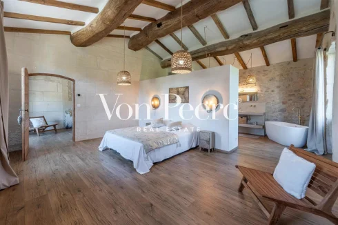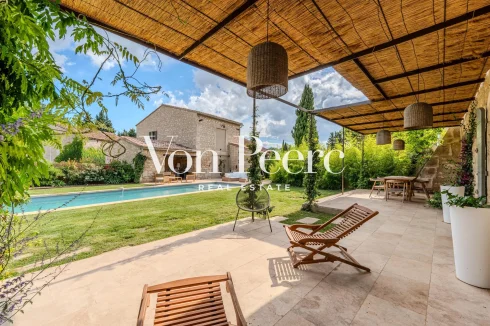Located in the commune of Maussane-les-Alpilles, just 2 minutes by car from the prestigious Baux-de-Provence golf course, this magnificent property was fully renovated in 2022. With a living area of 340 m², this Provençal farmhouse is set on a beautifully landscaped plot of 1857 m², offering an exceptional living environment.