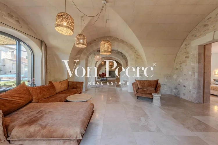 Elegant Ground Floor: The ground floor features large vaulted rooms including a welcoming entrance, a spacious grand living room, a large dining room with a fully equipped kitchen, and a superb fireplace.