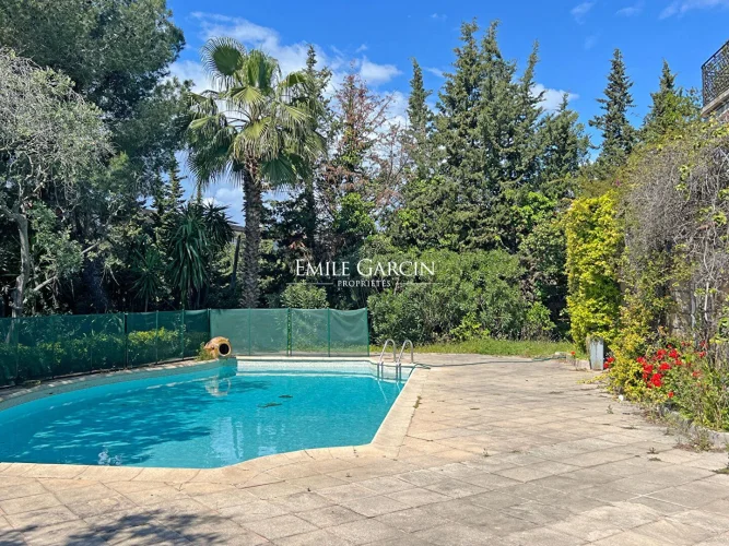 Located in the famous Basse Californie district of Cannes, this charming town house presents a living area of approximately 260 sq.m spread over three levels, plus 50 sq.m in outbuildings. The entire property is in need of renovation. Bright and spacious, the property comprises a large living/dining room with fireplace, a separate kitchen, five spacious bedrooms, two bathrooms and plenty of storage space. All the bedrooms enjoy access to delightful terrace and its sea view. At garden level, there is an annex that could be used as a pool house, garage or independent apartment. Landscaped garden of 900 sq.m with beautiful swimming pool. Excellent potential!