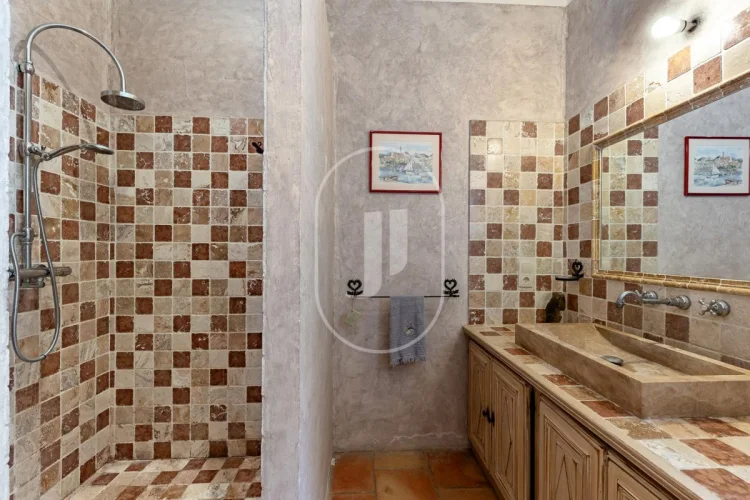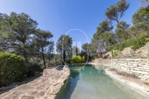 The exterior, a veritable haven of peace, extends over almost 6,000 m² of fully enclosed terraced grounds. It includes a landscaped garden, a wooded area with oak and pine trees, and two beautiful terraces perfect for relaxing. A little further away, the free-form infinity pool, with its beaches and covered terrace, provides a relaxing setting in which to enjoy the peace and quiet.