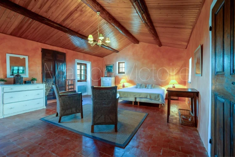 The ground floor comprises: spacious sitting and dining room, bathed in light adjacent kitchen laundry room large larder guest loo. The terracotta floors beautifully complement the Provençal ceilings and exposed beams, creating a timelessly elegant atmosphere.