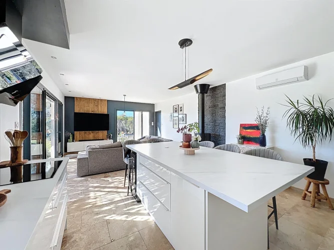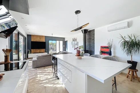 The interior offers a beautiful living room of more than 34 m2 with open kitchen, as well as a sleeping area with three bedrooms, including a master suite with private shower room and dressing room. A second shower room completes the set.