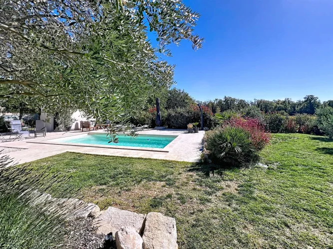 Outside, you will appreciate a large terrace with a view of the vineyards and a garden with trees and heated swimming pool.