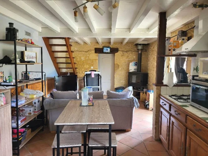 Old stone property with 5 houses of 2 or 3 bedrooms, all rented out, garages and parking lot. Rental income of 2740 per month. Net profitability of 7.21%. Nice view, near a village with shops. 30Mins from Bergerac airport.