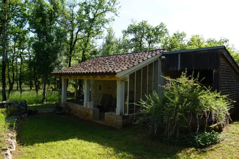 An independent cottage of 50 m² composed of a living room with kitchen area, a shower room, a toilet, a bedroom and a mezzanine. An adjoining cellar,