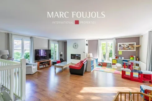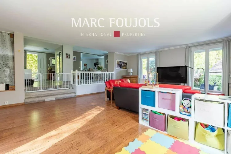 The Marc Foujols agency is pleased to present this lovely house, set in peaceful surroundings on the edge of a forest. You'll enjoy a pleasant garden and heated swimming pool, perfect for relaxing. On the ground floor, you'll find a large entrance hall leading to a spacious double living room with wood-burning stove, a dining room opening onto a modern, fully-equipped kitchen. On the second floor, you'll find 5 bedrooms, including a master suite with dressing room, shower room and terrace. An additional bathroom, separate Wc and another shower room complete this floor. The second floor offers even more space, with a sitting area, study and additional bedroom. Landscaped garden, double garage, workshop, laundry room.