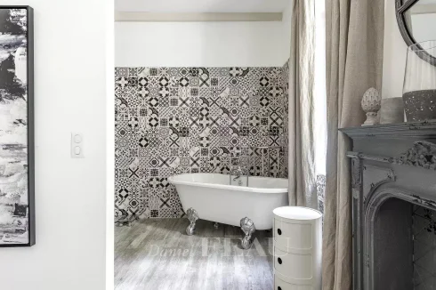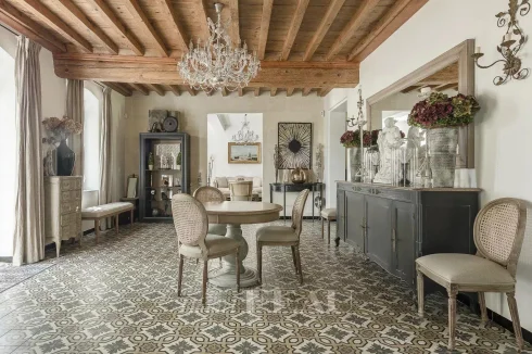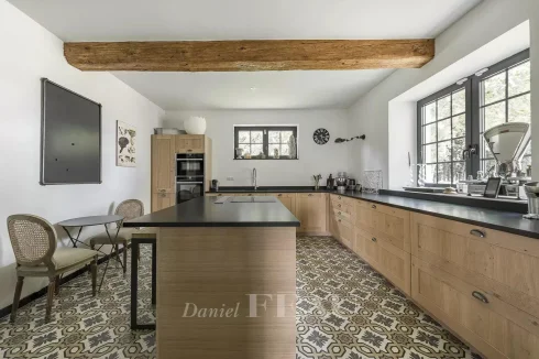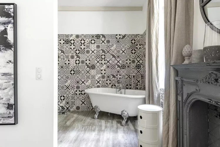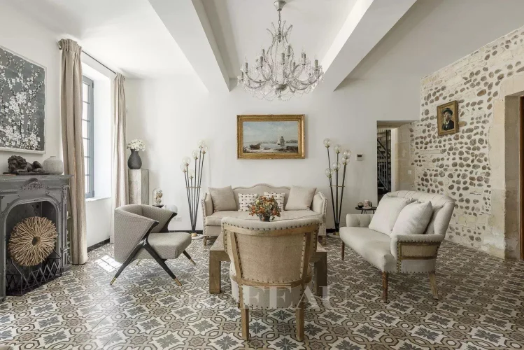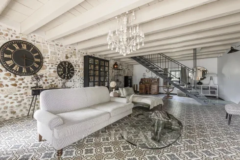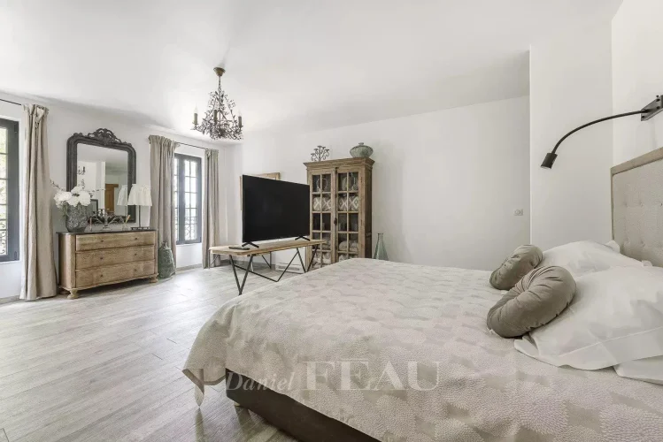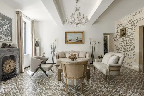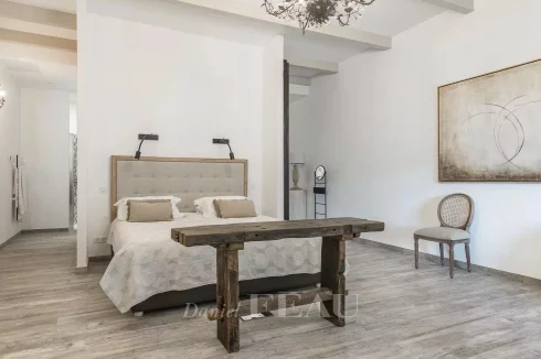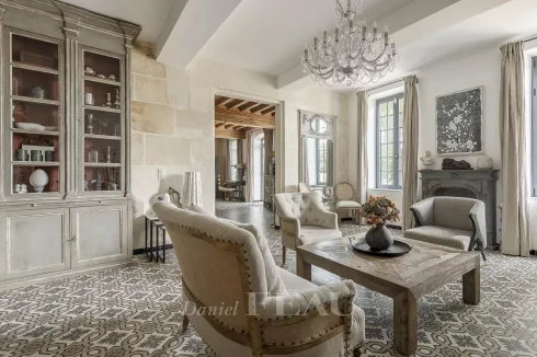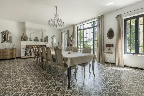 Oozing with period charm and authenticity, this includes a living/reception room, a second over 50 sqm living room/TV lounge, a spacious fully equipped kitchen, a bright dining room featuring a Louis Xiv style stone fireplace, and five bedrooms including 4 suites with bathrooms and separate wc. 200 sqm of further living space remains to be fitted as desired.