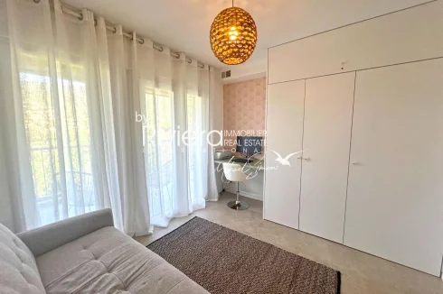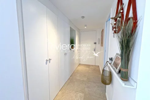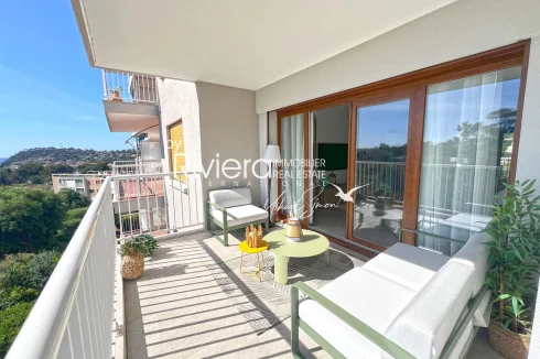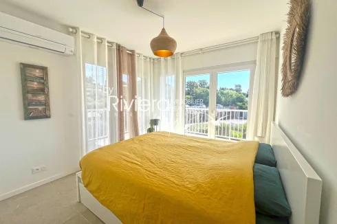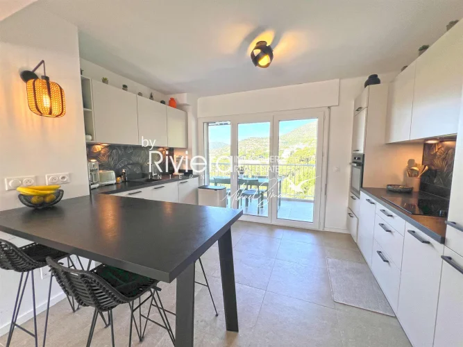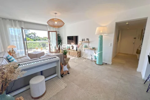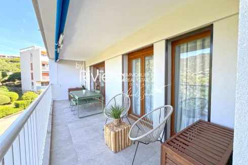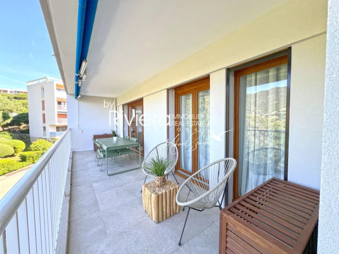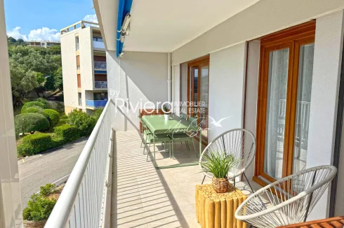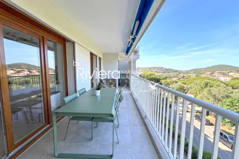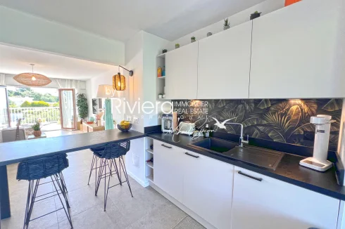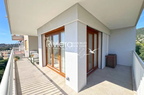 Apartment for sale in Cavalaire, 5 minutes from the town center and the beaches with sea view, in a recently renovated residence, very beautiful dual-aspect apartment of approximately 83m2 completely renovated by an architect offering an entrance hall with cupboards, a living room with an equipped American kitchen opening onto two spacious terraces with sea and hill views, three bedrooms including a master suite with dressing room, shower room and toilet, a second shower room with toilet, a garage and a private parking space. Quiet yet close to the town center with a superb sea and hill view! Favorite!
