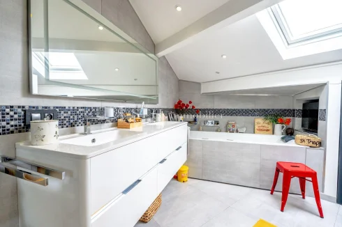 Sale apartment Sainte-Maxime. In the city center, on the top floor, superb loft renovated with quality services with a total area of 154.75m². It offers: entrance hall, guest toilet, living room opening onto a large south-facing terrace, open-plan fitted kitchen and dining room. Upstairs: office area, 3 bedrooms each with bathroom including the master suite with bathroom, shower and large dressing room. Laundry room. The apartment is equipped with home automation. Secure car park.