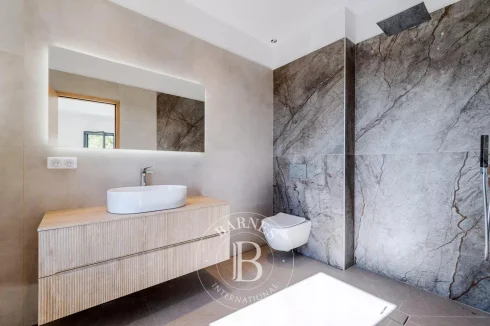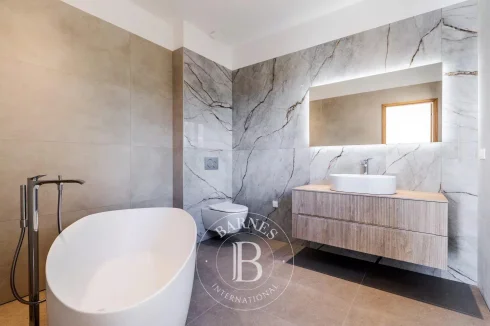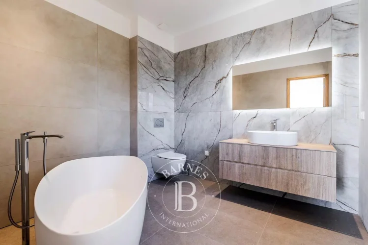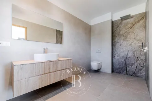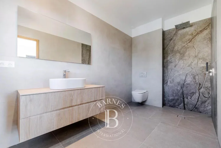 Facing south, the villa is bathed in natural light throughout the day. It offers a spacious living and dining area, opening onto the kitchen (to be fitted according to your preferences). On this same level, you will also find a master suite with dressing room and shower, as well as a laundry area and guest toilet.