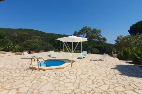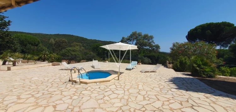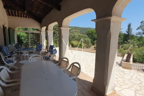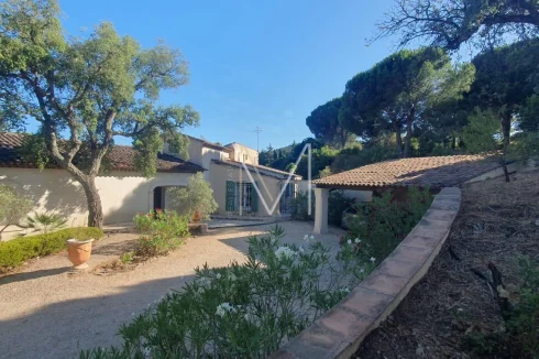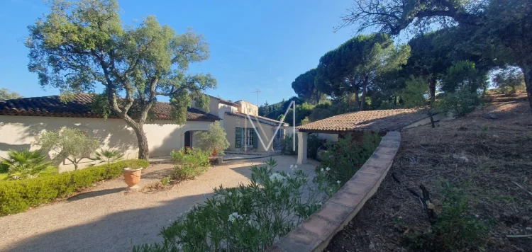 Magnificent property located in the commune of Plan de la Tour in a quiet and private area. Built on several plots totaling more than 4 hectares, this property benefits from a beautiful exposure, a glimpse of the sea and the view of the Plantourian hills. Large traditional swimming pool 10 5m, numerous parking spaces. The main house (approx. 250M2) opens onto an entrance hall with a large office with fireplace and a covered terrace, 1 separate fitted kitchen, 1 dining/living room with fireplace, 5 bedrooms including 2 double bedrooms with shower room, bath and toilet, a very large terrace with 1 jacuzzi and 1 very beautiful patio sheltered from the wind with its fountain. On the upper part of the house: 2 small bedrooms each with shower room and toilet, and 1 Tropezian terrace. On the lower part: two double garages, 1 wine cellar, plenty of storage space, access to the crawl space. The caretaker's house (approx. 50M2) below the property has a covered terrace with Bbq, and a long terrace, type t3 it has a semi-open kitchen on living room with fireplace, 1 large master bedroom, 1 bathroom and 1 toilet, upstairs a small children's bedroom. The whole thing is very well maintained with septic tank and city water, oil heating and air conditioning. Ok diagnostics carried out August 2025. Commercial agent registered with the Rsac of Frejus under number Information on the risks to which this property is exposed is available on the Géorisques website: