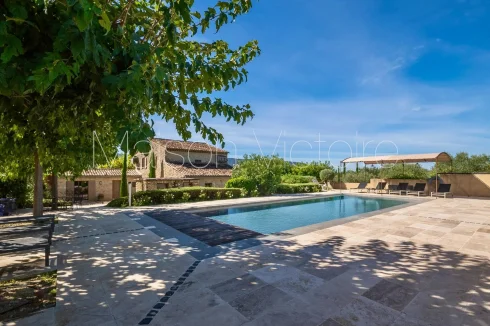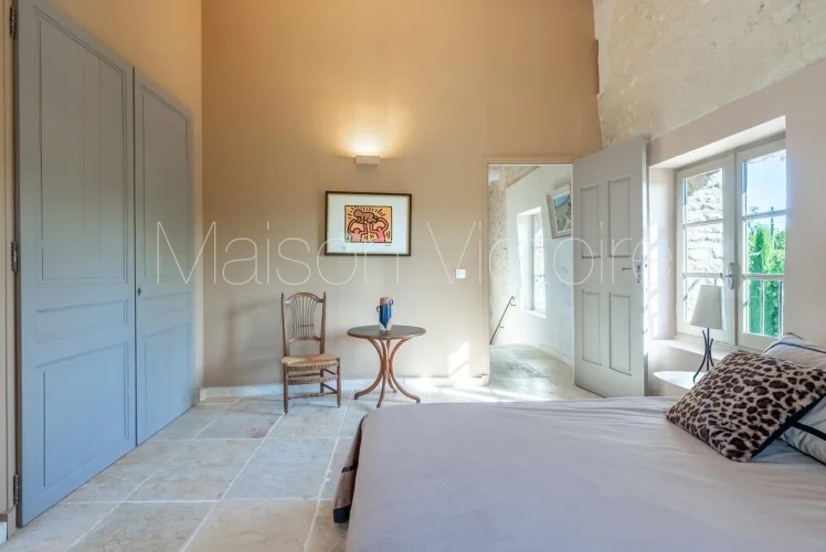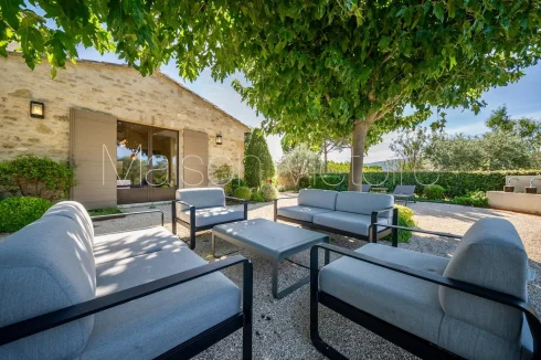This handsome stone farmhouse lies in the heart of the Gordes countryside and has been the subject of a complete and masterful renovation. Nestled within 7.4 acres of private fruit orchards, olive groves, and landscaped gardens, the property offers remarkable privacy and superb views of the Luberon mountain range. The craftsmanship throughout is exemplary, combining high-quality materials, a refreshingly contemporary palette, gorgeous original features, and refined décor ? all working together to create a harmonious blend of authenticity and modern comfort.