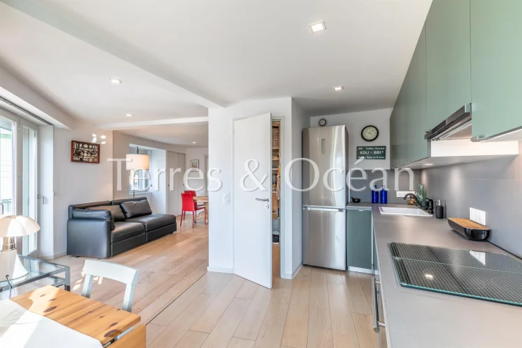Close to downtown Biarritz, this beautiful upstairs apartment is crossing with three balconies and a loggia. It is very bright for all the living rooms as well as the two bedrooms. Currently this type 4 is arranged in type 3 of which one chamber is modular. The kitchen is fitted and equipped, a back kitchen or a pantry is attached to it. A bathroom with wc and double sink, a bathroom with Italian shower, a separate wc, storage and cupboards enhance the comfort of this apartment. Very reasonable general charges, shops and schools nearby. Offered for sale by the Terres et Océan real estate agency in Biarritz - Mme Caroline Pilke - Mercier. Mob: