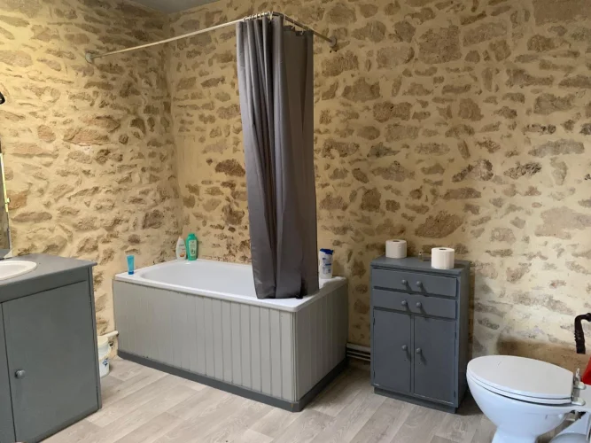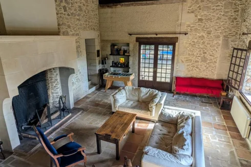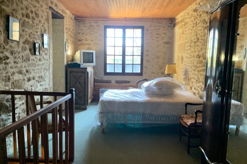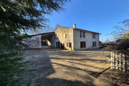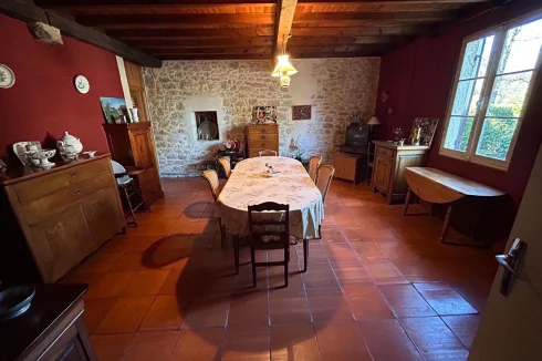 Charming stone house of 261 m2 with swimming pool, various outbuildings and wooded park of 4,742 m2! Ground floor: Entrance of 18 m2, dining room of 27 m2, kitchen of 28 m2, large living room with fireplace of 49 m2, office or living room No. 2 with fireplace of 23 m2, bedroom of 23 m2, bathroom with wc. Upstairs: Landing/bedroom, two bedrooms of 25 and 27 m2, bathroom with toilet, attic. Swimming pool with terrace and shower and toilet area, shed and lean-to. Detached barn and wooded and fenced garden.