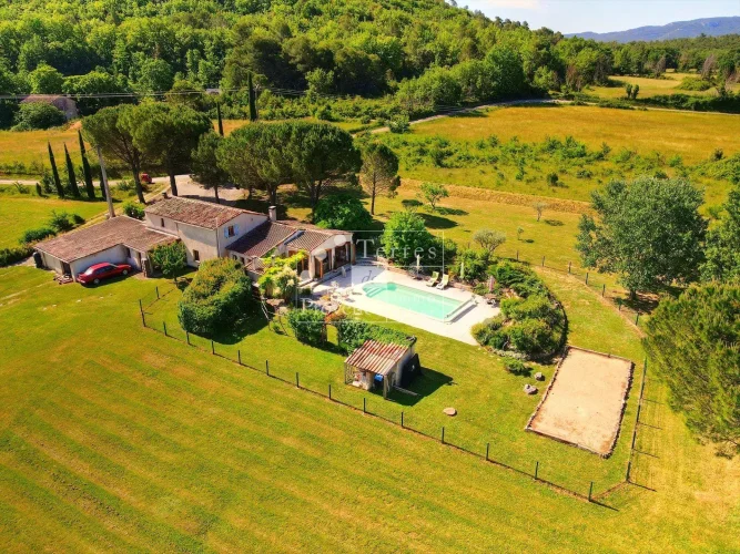 Nestled in a lush green setting in Provence, this authentic stone bastide beautifully combines the charm of the old with modern comfort. Ideally located in a peaceful and natural environment, this character-filled property set on over 13,000 m² of land will appeal to those seeking space, privacy, and outdoor living.