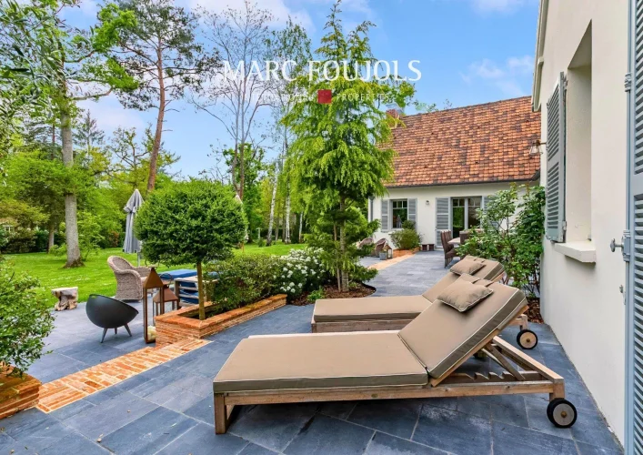 Designed for a refined art of living, the villa is equipped with a heated indoor swimming pool with counter-current swimming, a wellness area with hammam, as well as an integrated sound system on the entire ground floor. A double garage completes this villa.