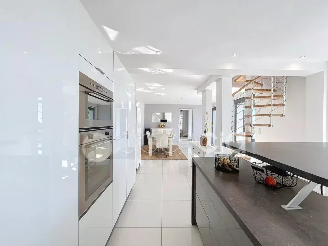 Discover this charming and pleasant family home a detached contemporary-style villa of 175 m² on 3 levels, located on the heights of Nice in the Pessicart area. It offers breathtaking panoramic views of the hills, sea and mountains, in absolute peace and quiet. The house features a bright living room with an open-plan kitchen opening onto the west-facing terrace with pool and poolhouse an entrance hall with cupboards and a toilet. Upstairs, you'll find a living room and the master suite with bathroom, dressing room and separate toilet. The 2nd floor features four bedrooms, a large shower room and toilet. A garage, workshop and several parking spaces complete this 1670 m² property. There's also a studio on the pool level, with its own shower room and separate toilet. The property is equipped with an alarm and electric shutters, with the possibility of creating a pétanque court or other sports facilities at the bottom of the grounds. Possibility of extension, as well as converting the 2nd floor into a future large 3/4-room independent apartment, with private entrance. Information on the risks to which this property is exposed is available on the Géorisques website: