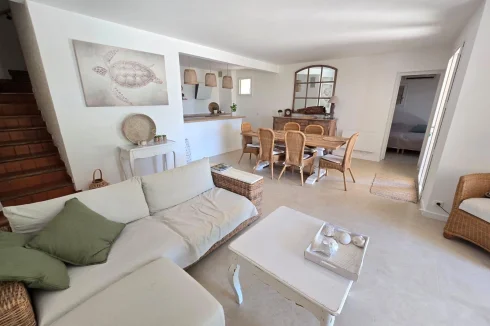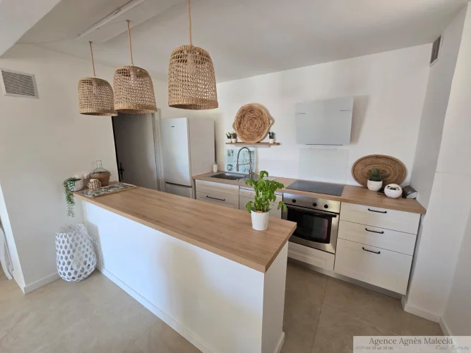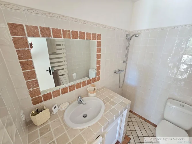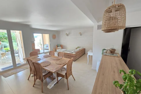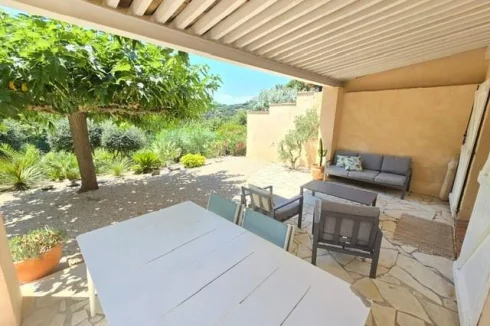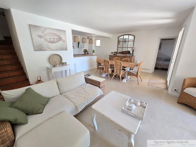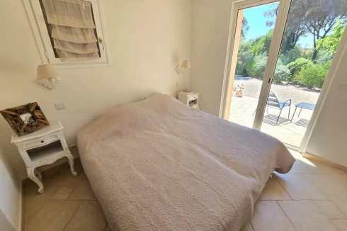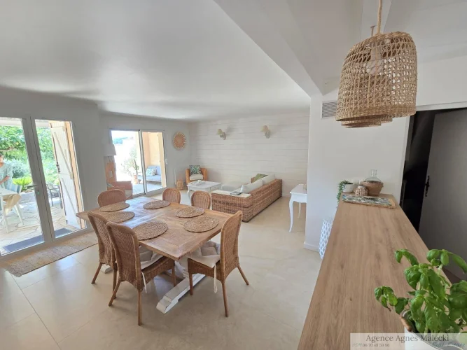 Splendid Mas built on a plot of more than 2,200m2 rare for sale, no work required in absolute calm, entrance serving 2 bedrooms with balcony, a bathroom, a toilet, on the ground floor magnificent new kitchen open to living room/lounge with covered terrace. Back kitchen, a bedroom with shower room, toilet and dressing room. Rare opportunity for sale with unobstructed view of the greenery, access to the swimming pool in a few minutes and beach on foot in 10 minutes. Contact me .
