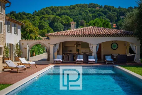 Nestled in a preserved natural setting at the gates of Mougins, free from any disturbance yet close to all amenities, this 19th-century stone mas impresses with its authenticity, generous volumes and unrivalled serenity. Carefully renovated a few years ago, it combines the charm of the past with modern comfort to perfection.