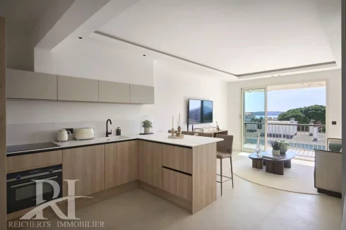 Ideally located within walking distance from shops and beaches in Cannes Basse Californie, this fully renovated 55sqm top-floor 2 bedroom apartment offers views all the way to the sea.