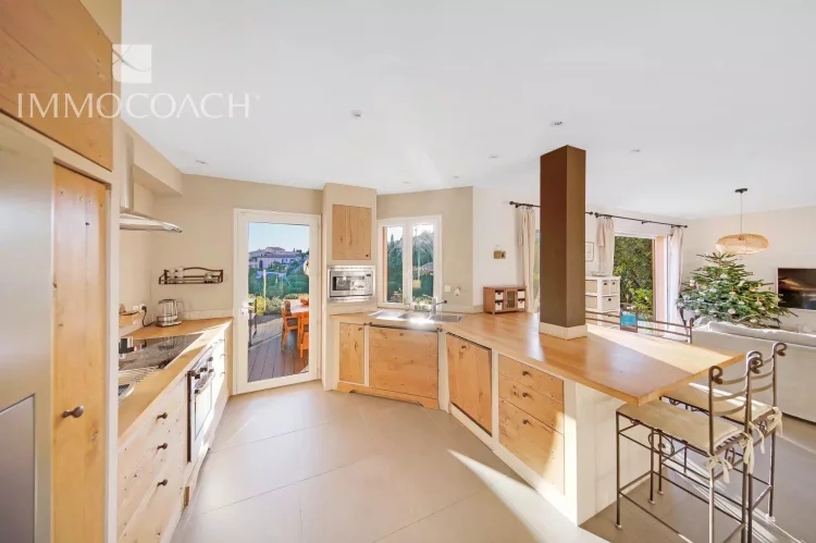 You will be captivated by the warm atmosphere of the living room with its fireplace and the open-plan kitchen leading to the terrace. This recently renovated villa also includes 4 bedrooms, 2 of which have en-suite bathrooms, and a bright open space that can be used either as an office or kid’s corner.