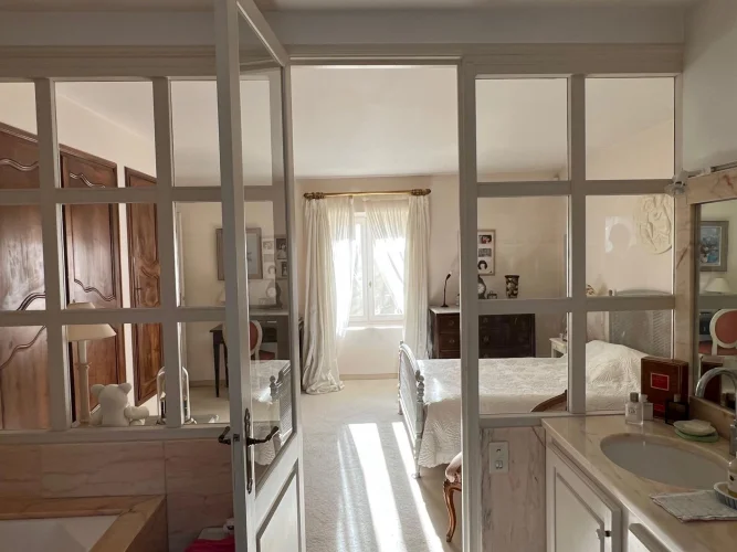 This house is very bright, it faces south. It benefits to the north from a beautiful view towards the Monts de Vaucluse and the surrounding hills.