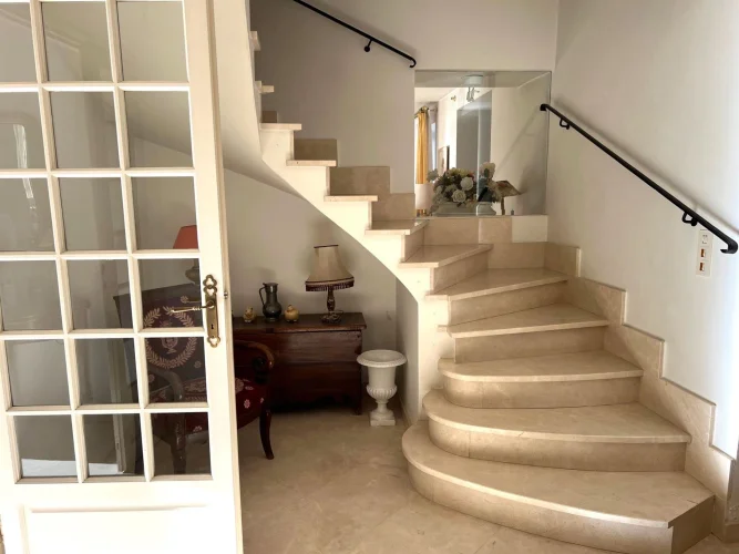 The floors on the ground floor are stone and terracotta tiles on the first floor.