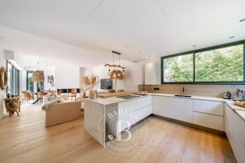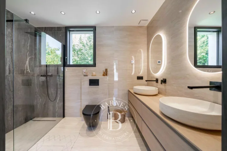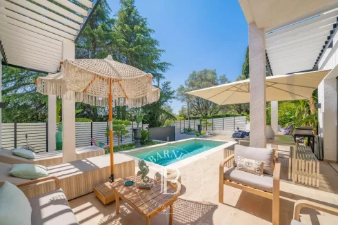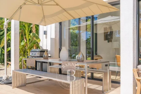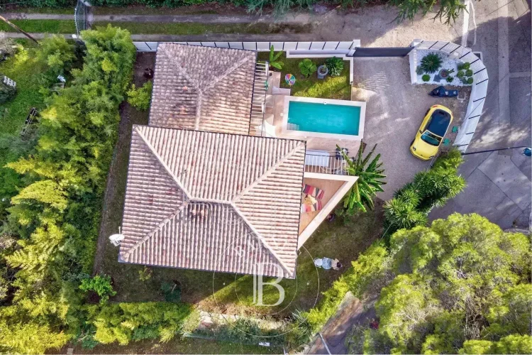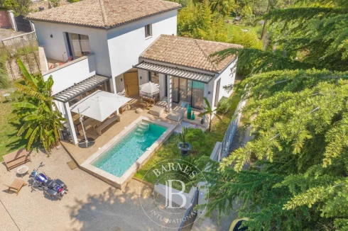 Recently built in a residential area within walking distance of the old village of Mougins, this 215 sq.m / 7-room house offers atypical volumes and architecture. With its contemporary yet cosy style, it also features a pretty garden planted with Mediterranean and exotic species.